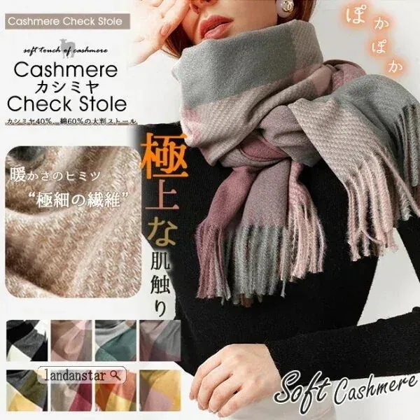 大判のマフラーが欲しくて探していました。カシミヤ?わからないけど、柔らかくて暖かいので満足です。