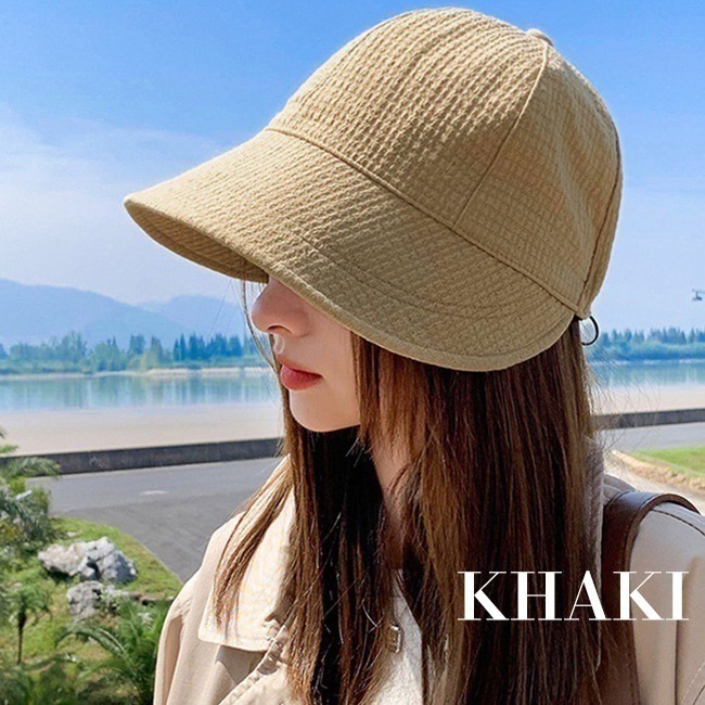 サイズ調整できていいですが、ちょっとおもしろいシルエットになるというか…畑仕事感のような…赤ちゃんがかぶる帽子のような…。