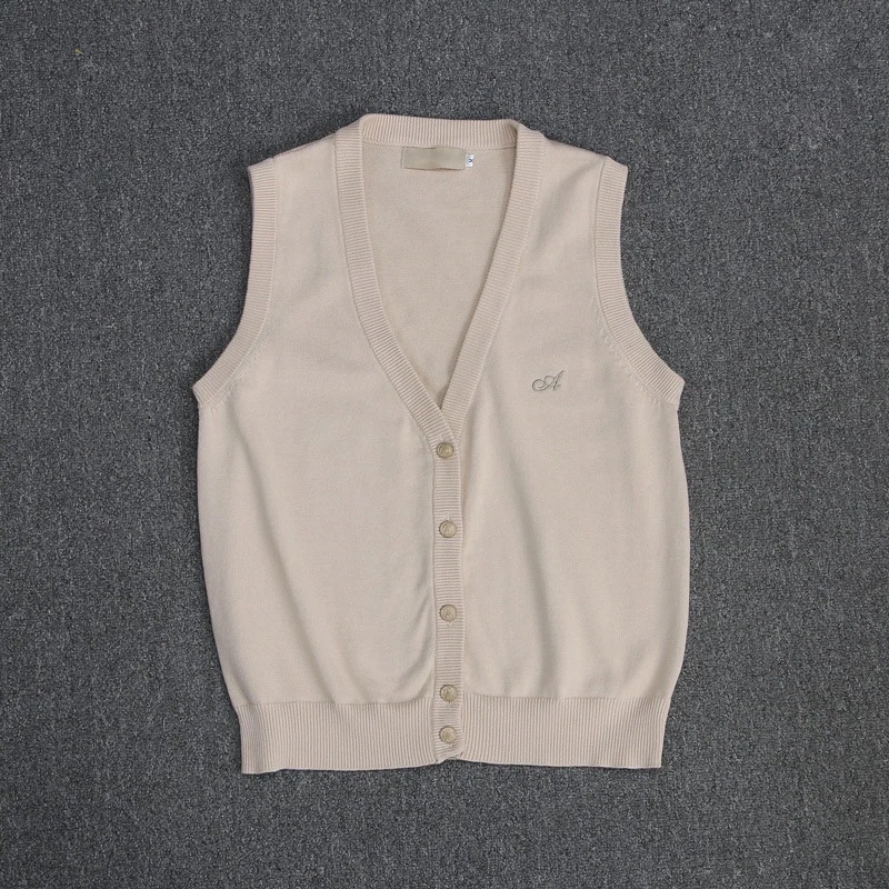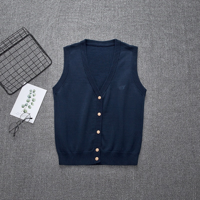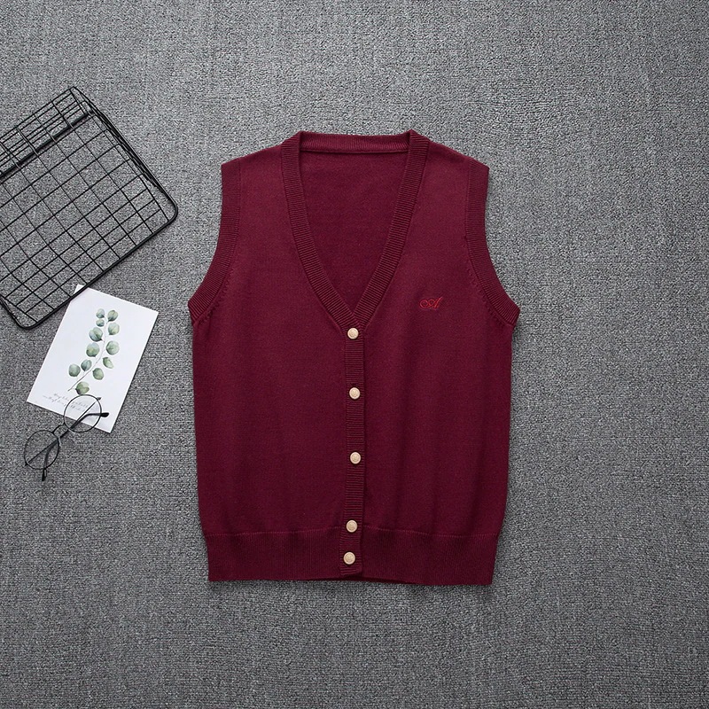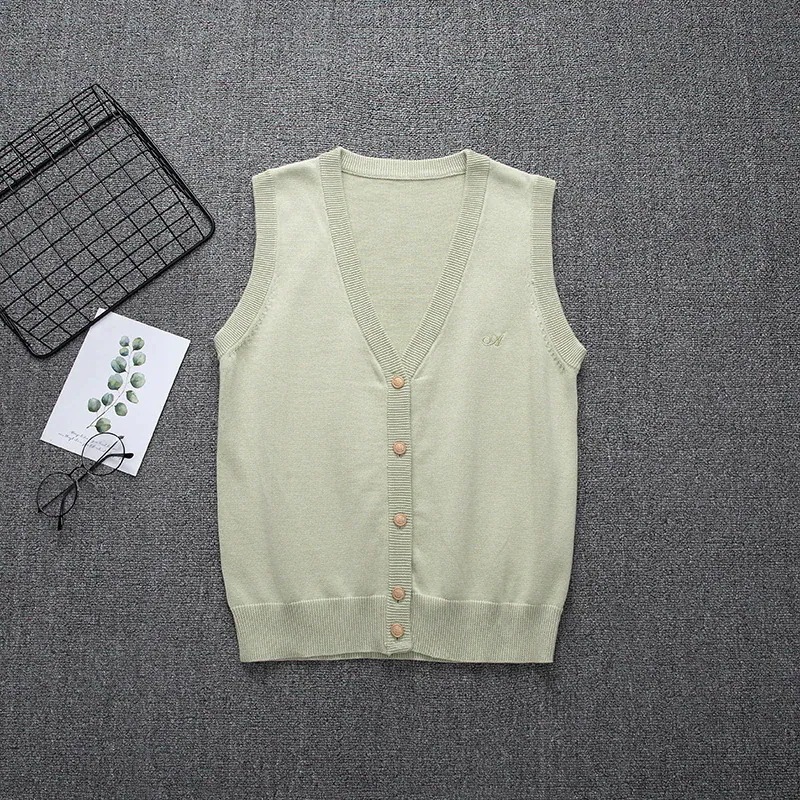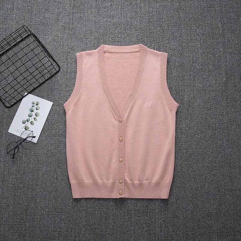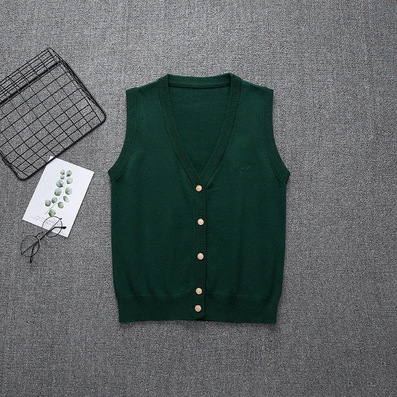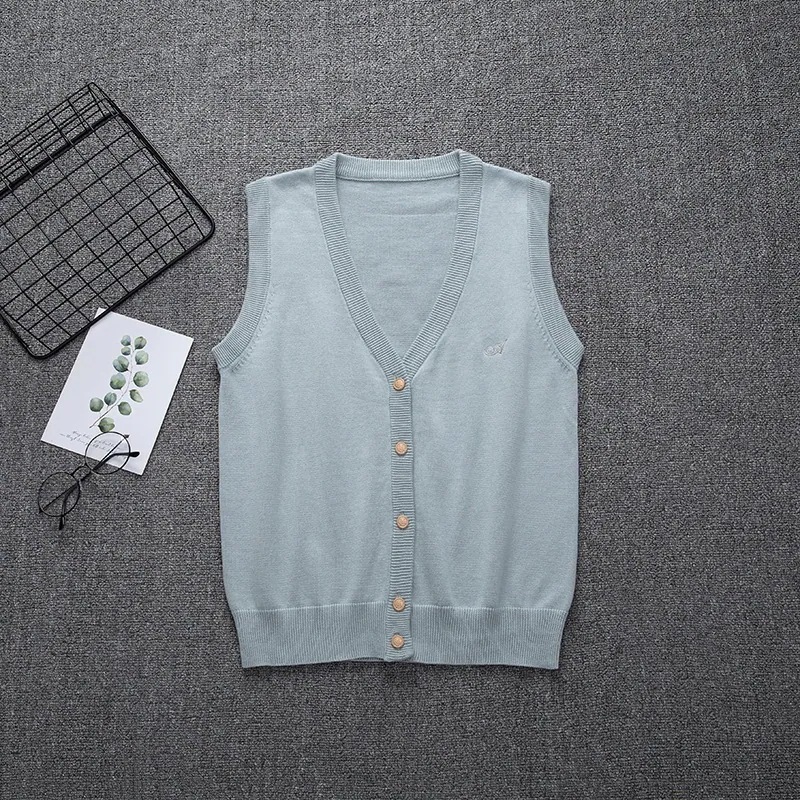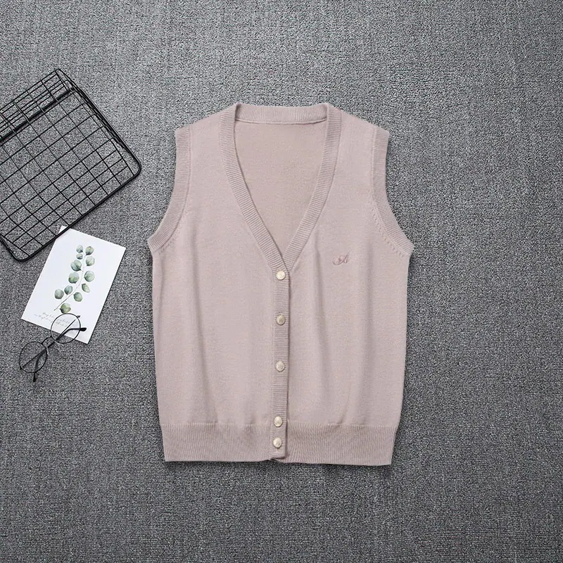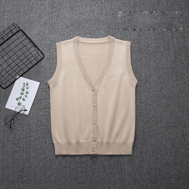 スクールベスト 前開き カーディガン薄手春 夏ベージュ ニット 女子高生 制服 学校 セーラー服 コス コスプレ 職場 ボタン 白 黒 ベージュ ボタン 39