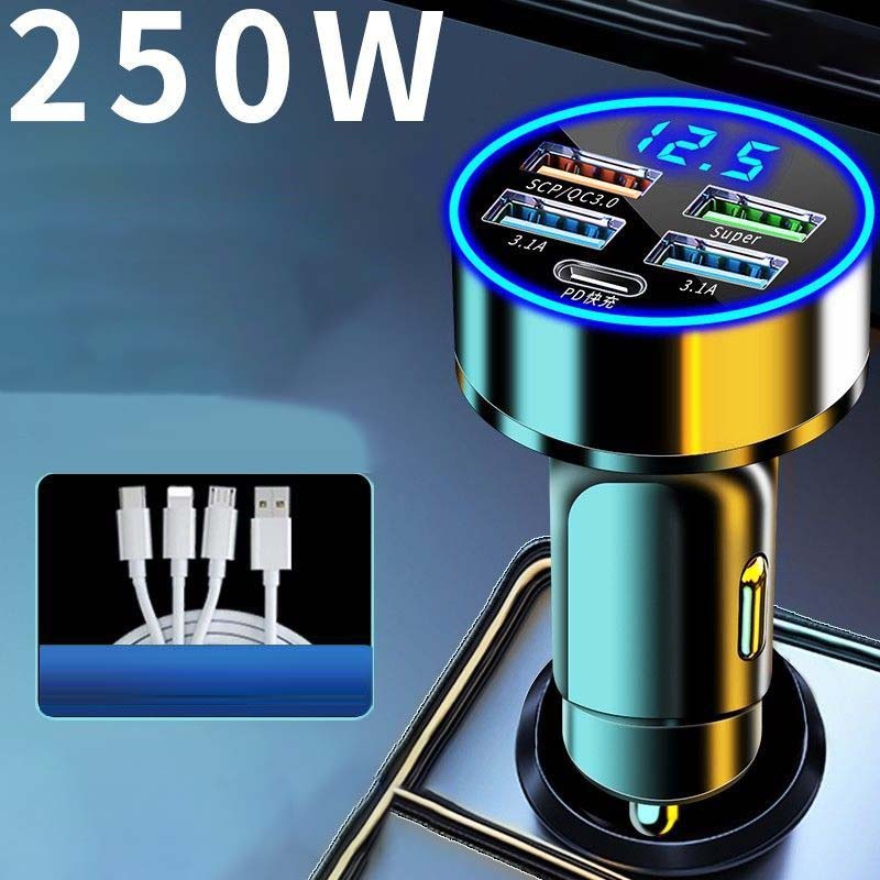車両充電アダプター スマホ充電ケーブル 車用充電ソケット USB口 アップルアンドロイドPD3in1 高速充電アダプター