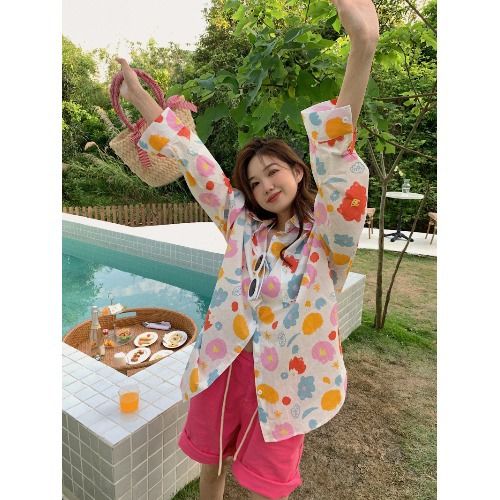 シャツ 花柄シャツ夏の新作ゆったりミディアムシャツ長袖日焼け止めトップス トップス シースルートップス ブラウス