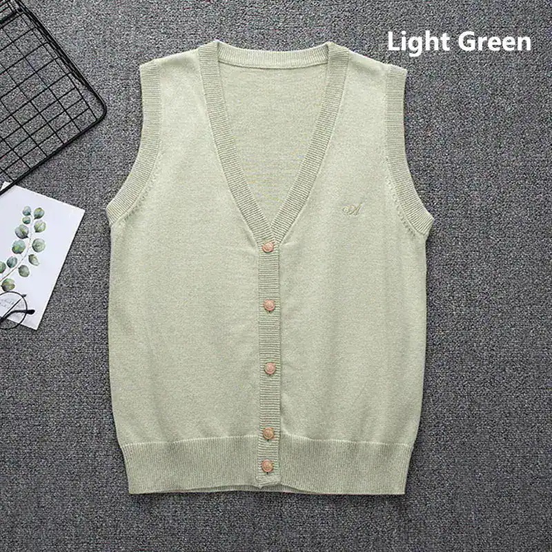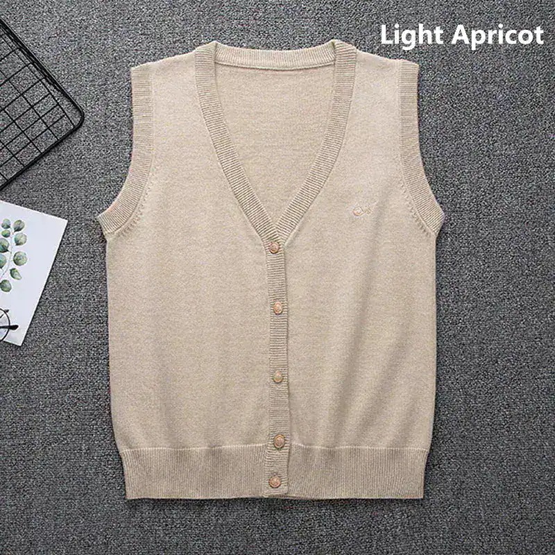カーディガンベスト 12色100%綿 無地薄手春秋冬 レディースファッション Vネック ゆったり セーター トップス アウター 可愛い かわいい JK女子高生学生服 スクール制服 ニットベスト