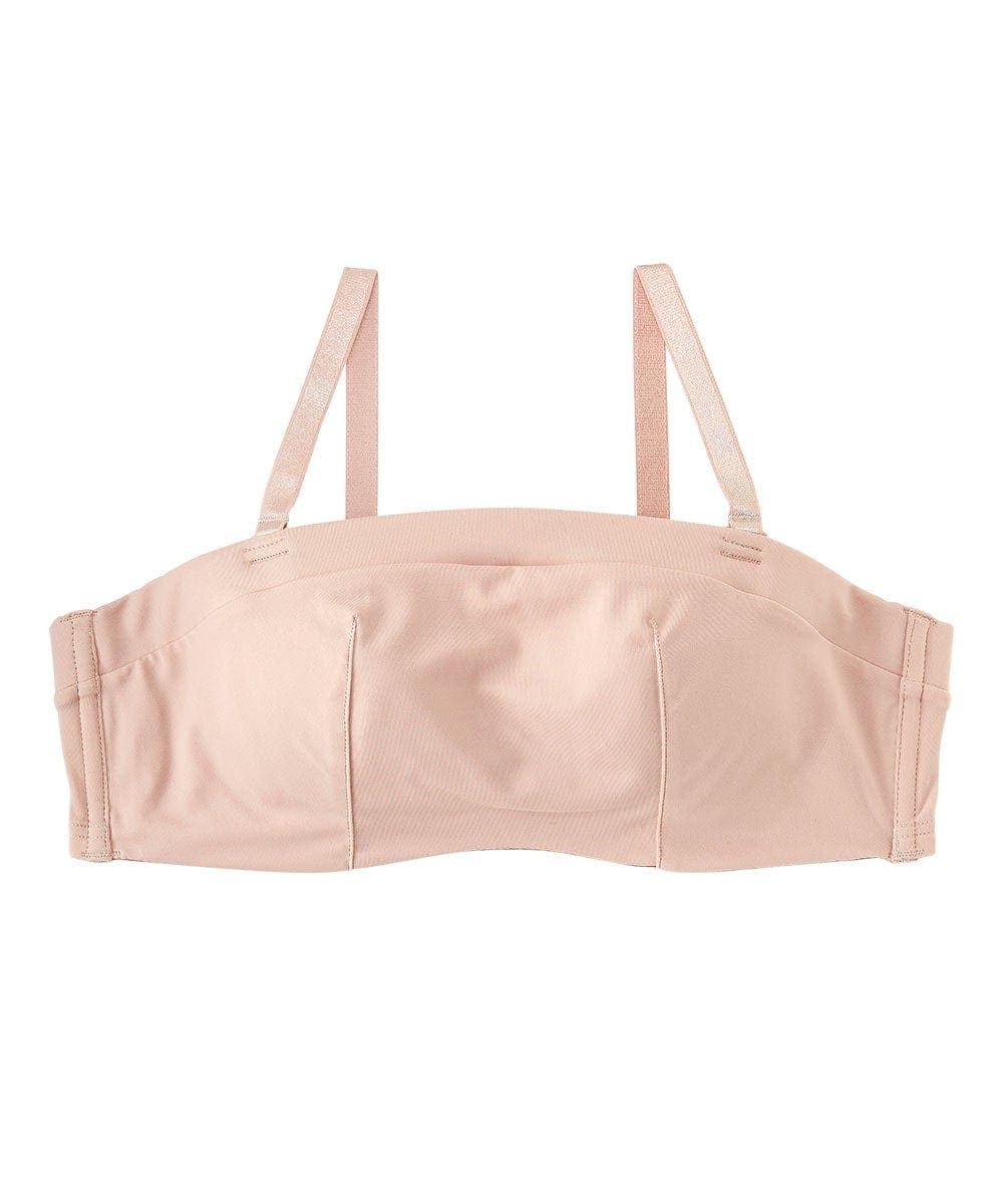 デニムビスチェを着たく、ストラップレスブラを探してました。内側に着るだけなので、リボン等のデザインは無いものでシンプルなものを探していたのでデザインはらとても満足です!ただ元々離れ乳なので、水着でもブラでもパットの型が内側に寄っているものはあまりフィットせず浮きがちです。今回はストラップを外して使いたかったので緩くて落ちてきたら困るため、アンダーは普段のブラと同じにし、カップ数を1つ下げました。なので普段は浮いてしまうカップの型も上手く寄せてピッタリくらいに着れました!なので、アンダーは普段のブラと同じでカップ数を1つ下げたサイズ買うのおすすめです!デザインも上から着る服に響かなそうで大満足です!