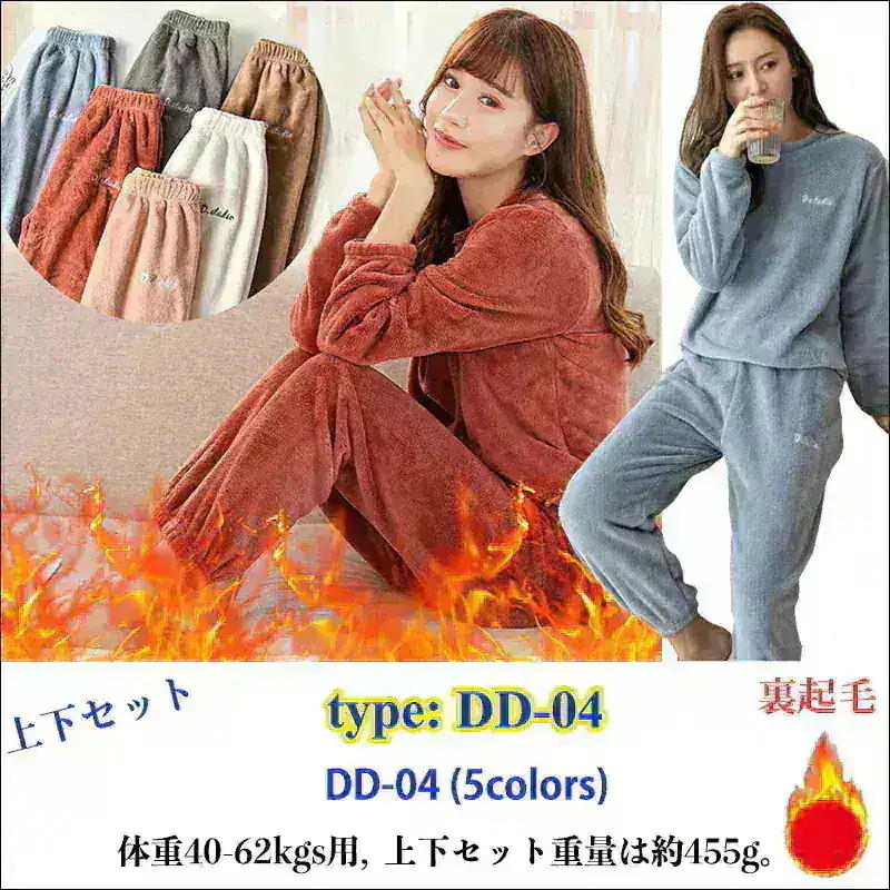 思ったより生地は薄めですが、ふわふわで暖かいです。袖口にゴムが入ってるのもいいですね。158cmで着丈もパンツも丈はちょうどでした。