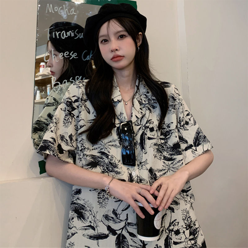 シャツ 夏のゆったり半袖花柄シャツ女のデザイン感レトロなシャツ Tシャツ 半袖 トップス シースルートップス ブラウス半袖Tシャツ