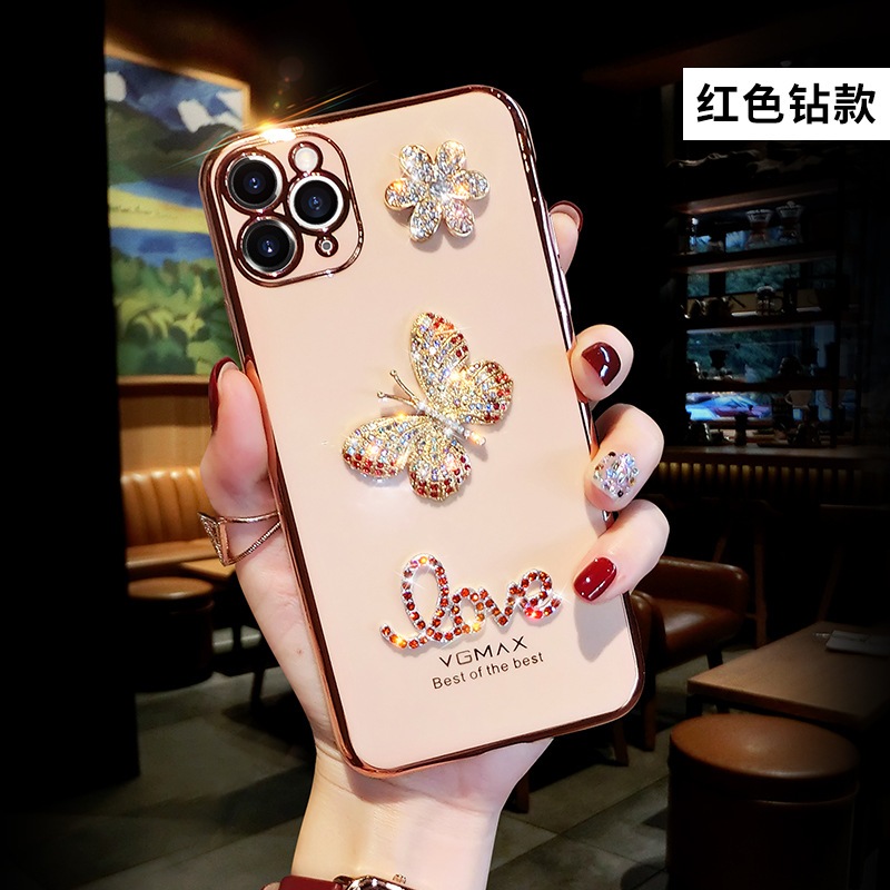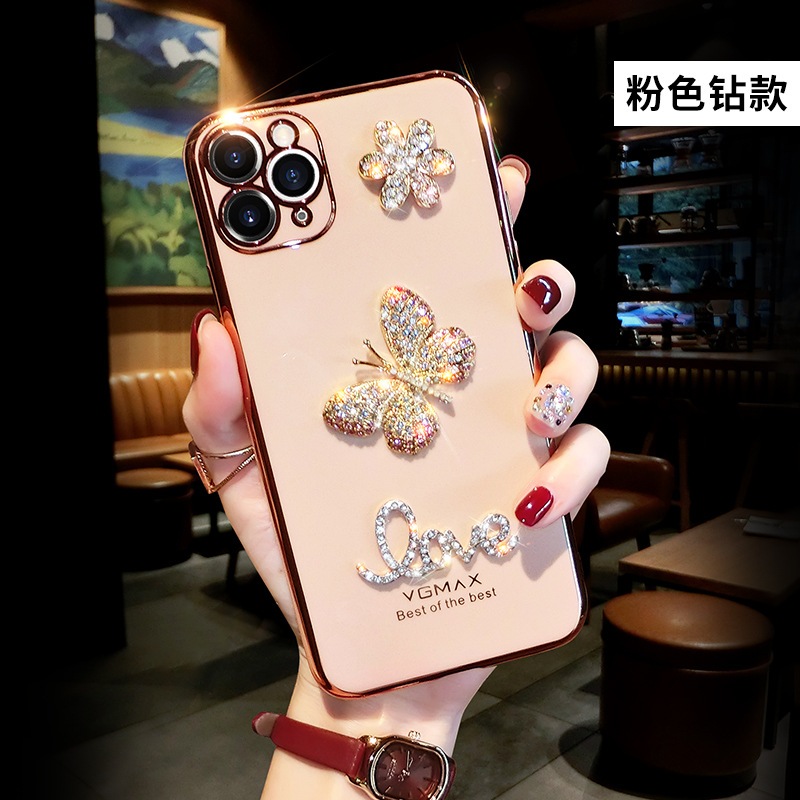 ピンクの蝶 ラインストーン iphoneケース キラキラ iPhone14/13/12/11 ケース 13PRO PROMAX 12PRO 11PRO MINI X/XS XR 7/8/se2/SE3