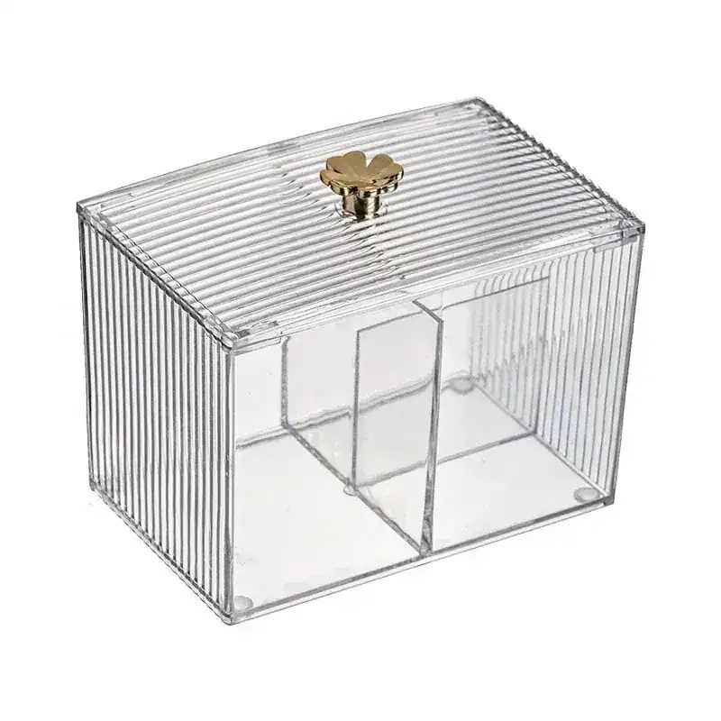 2+1カバー付きコットン収納品整理ケース透明綿棒ケース用デスクトップクレンジング綿棒収納ケースA4873