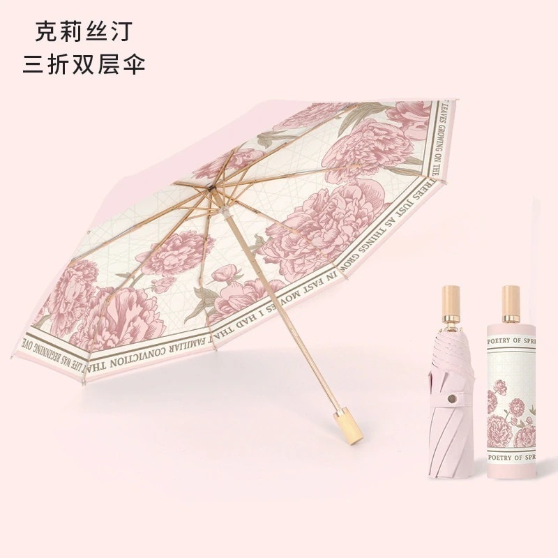 日傘 折りたたみ 二重晴雨兼用傘 UVカットパラソル黒ゴム 三重折り畳み傘 遮光100 軽量 日傘 完全遮光
