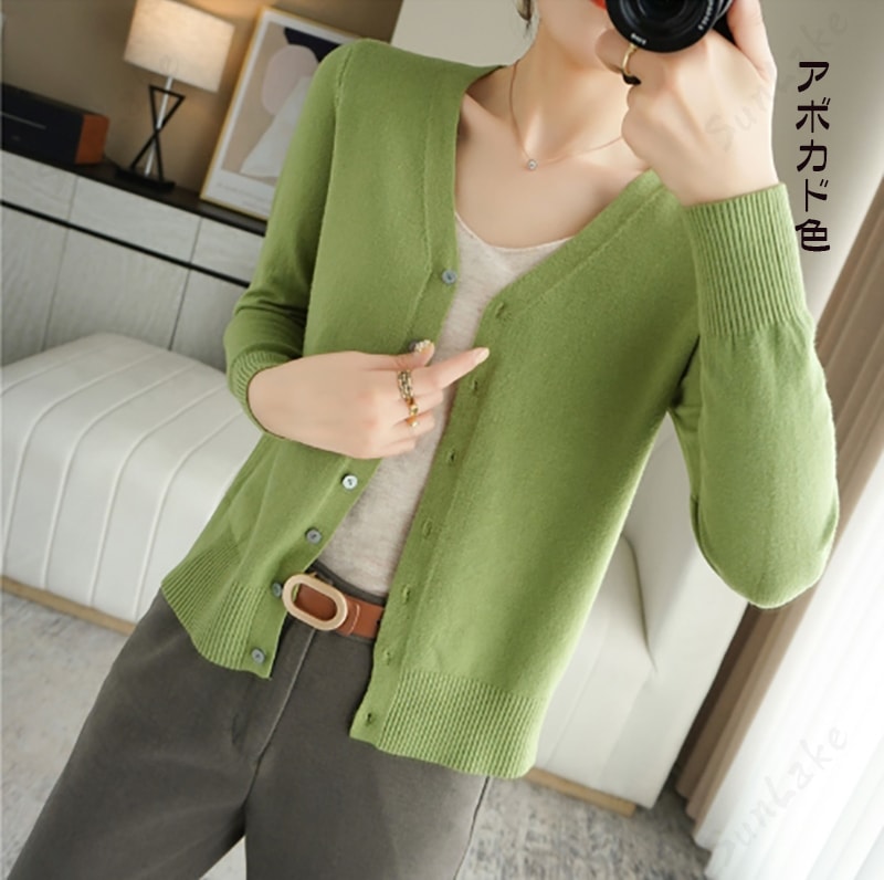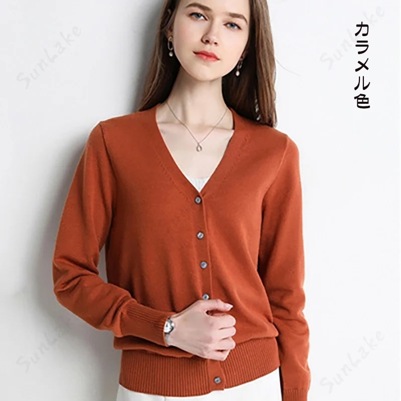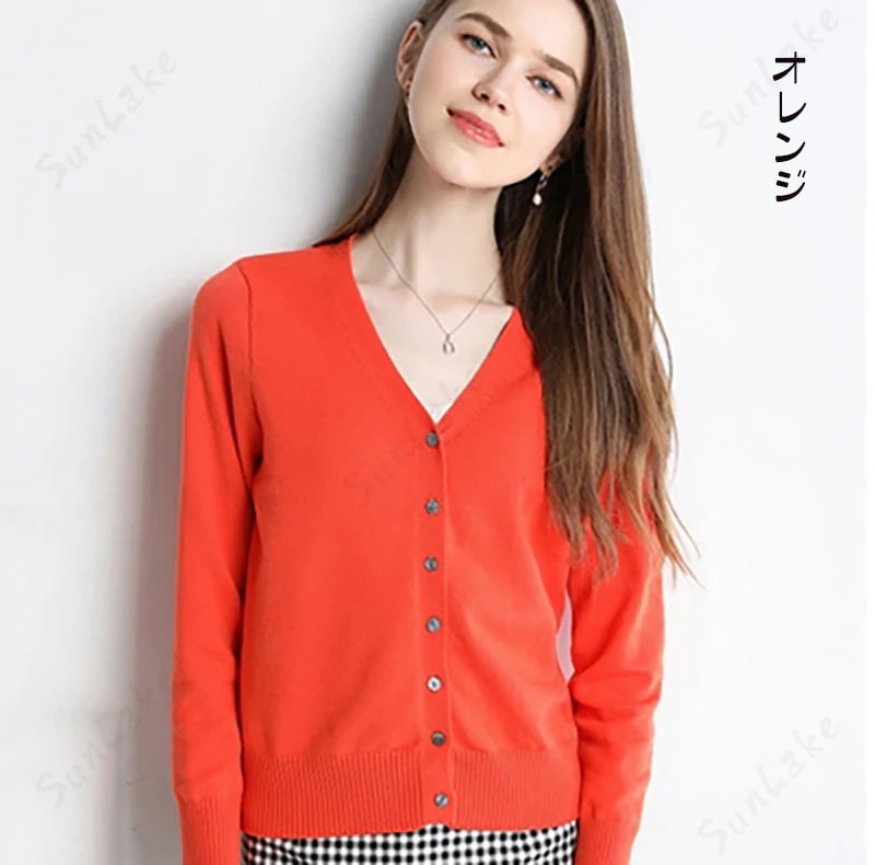 もちもち生地でまあまあ暖かさそうなカーディガンです。オレンジにしたので差し色にしても綺麗そうです!