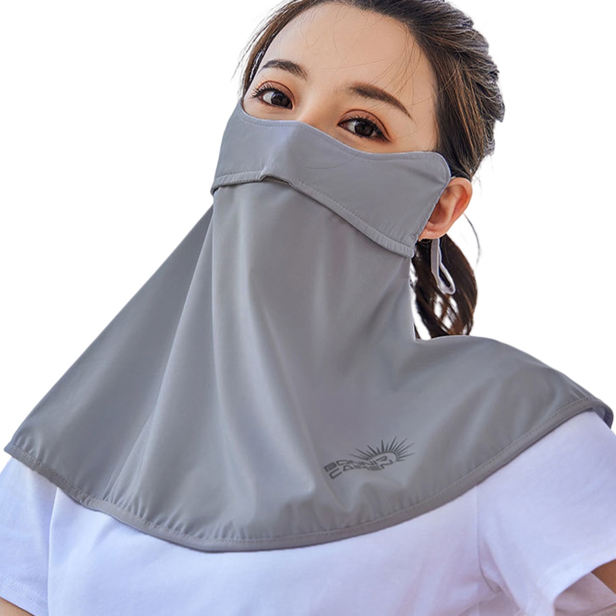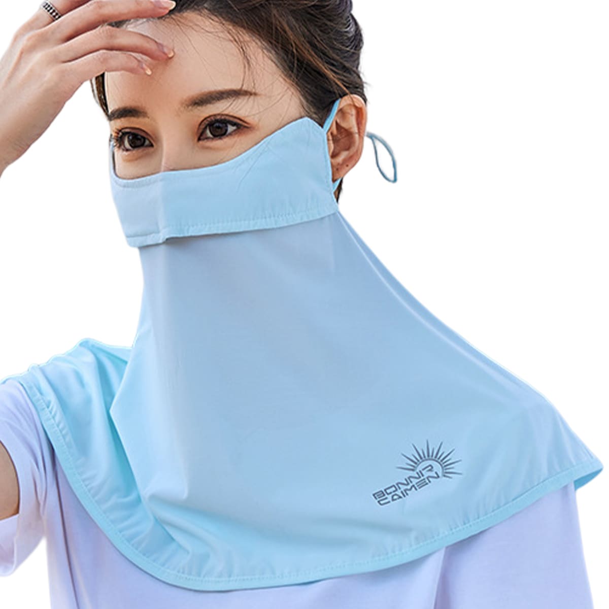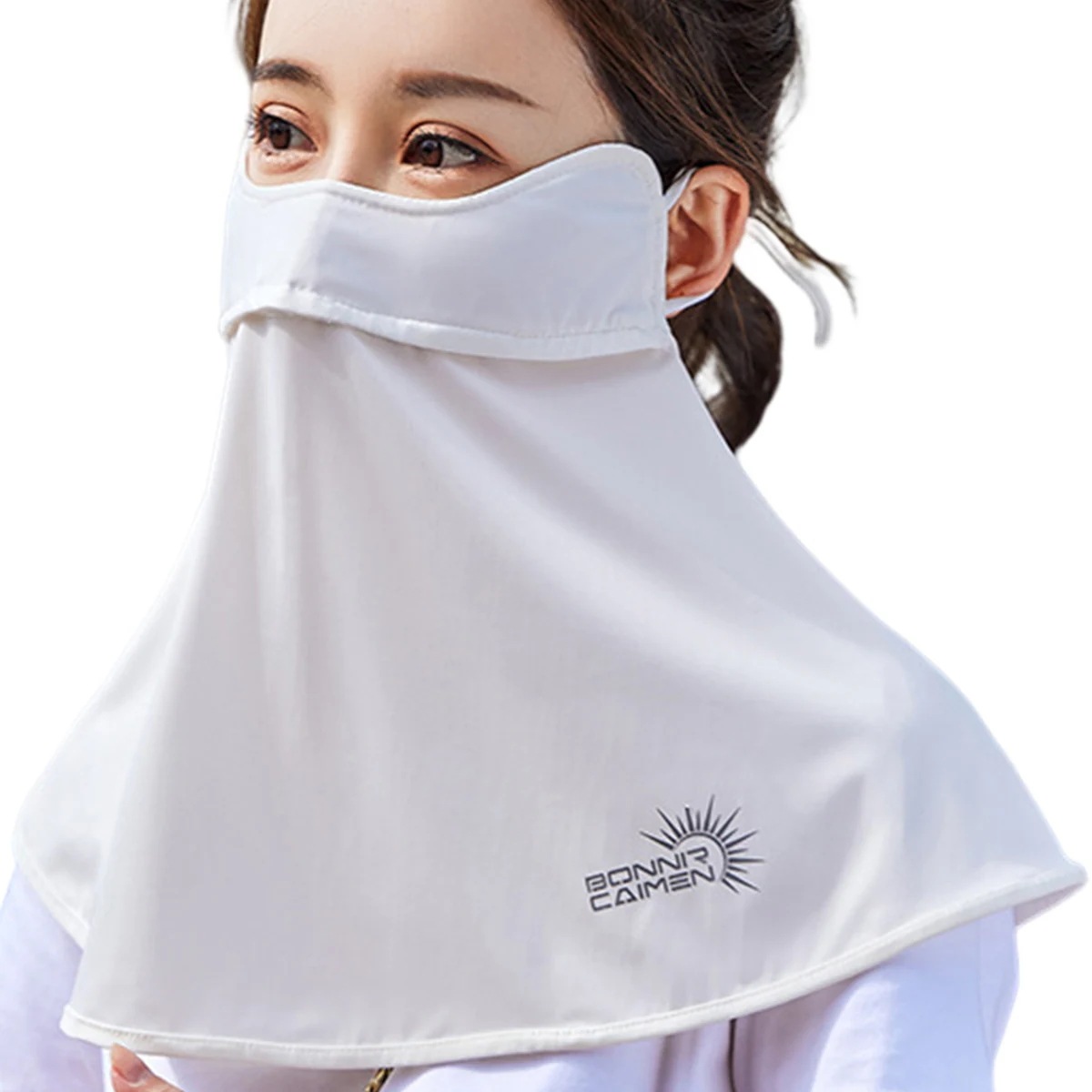 自転車通勤時の顔〜首元の日よけ用に購入しました。汗をかいても目立ちにくく乾きも早い。軽くて荷物にならないので重宝しています。開封時独特な匂いがしますが洗ってしまえば気になりません。