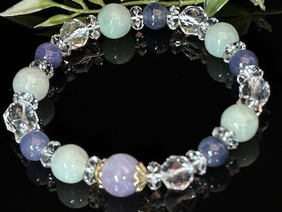 天然石 パワーストーンタンザナイト&ビルマ翡翠 7.5mm レーディスブレスレット