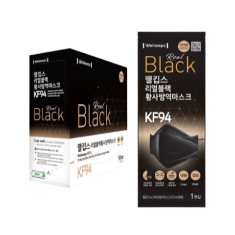 ウェルキープスリアルブラック黄砂防疫マスクKF94-大型50個入り