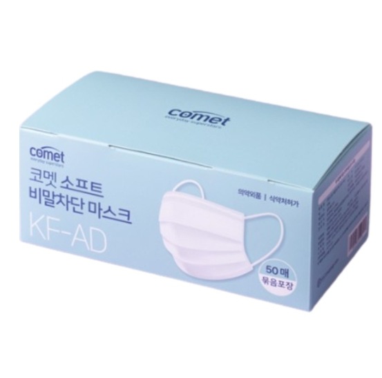 コメット【KF-AD認証】コメット ソフト飛沫防止マスク 大きめサイズ 50枚入りホワイト韓国製 不織布マスク軽い着け心地・通気性