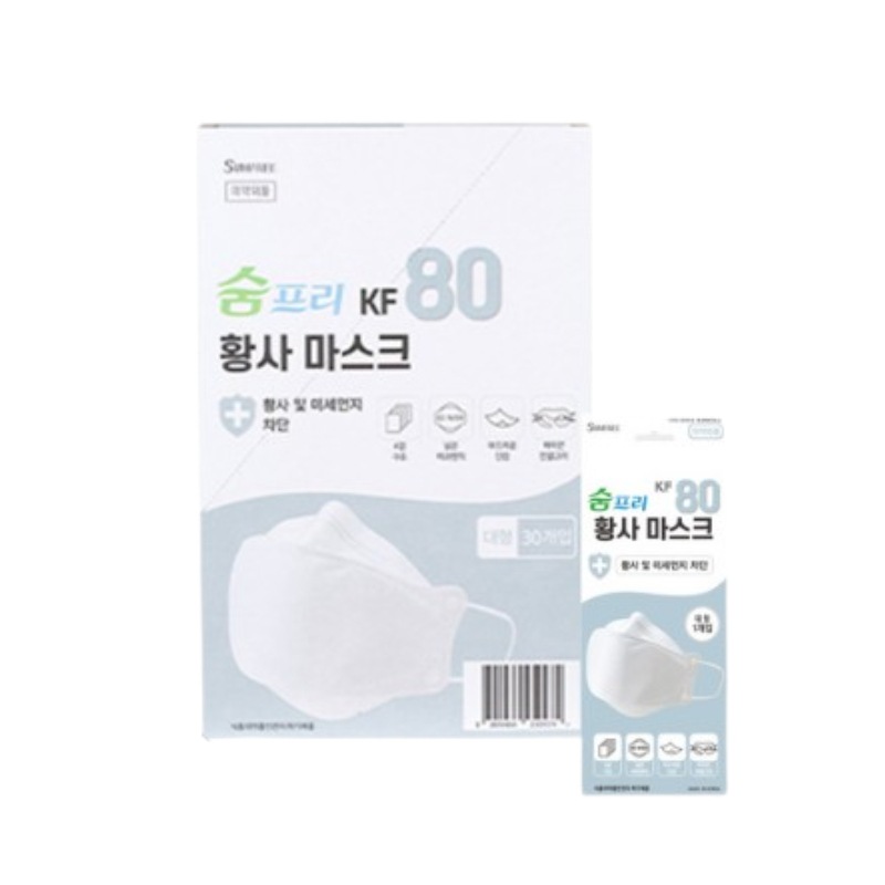 スムフリー 黄砂マスク 大型 KF80 ホワイト 30枚入X3個