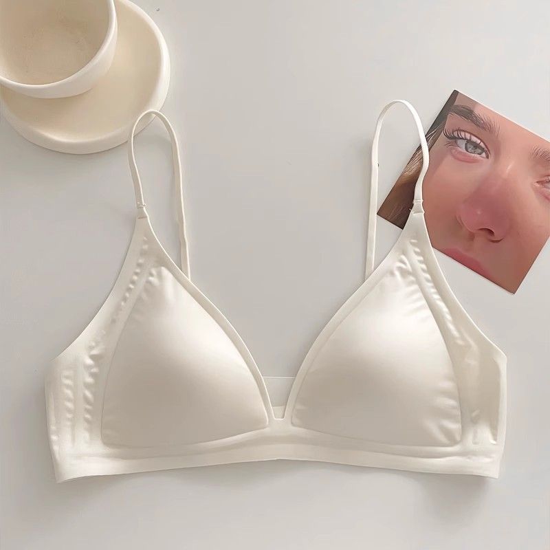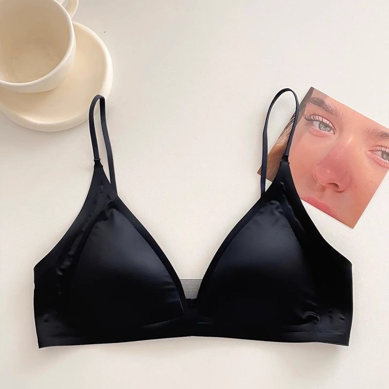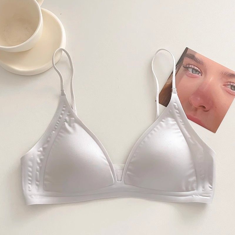 ノンワイヤーブラ ナイトブラ 補正ブラ スポーツブラ レディースブラ ブラジャー ヌード感のあるシームレスな光沢のある下着メッシュスプライシングの三角カップ小胸を引き立てる少女用ブラジャー