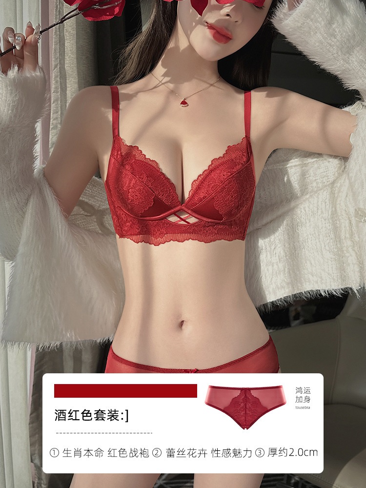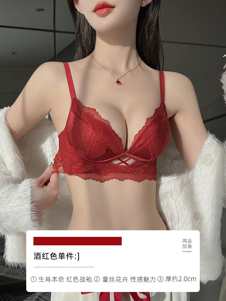 レディースブラ ノンワイヤーブラ ナイトブラ 補正ブラ スポーツブラ ブラジャー 辰年インナーセット小胸を大きく見せるプッシュアップ調整型セクシーレース赤ブラジャー