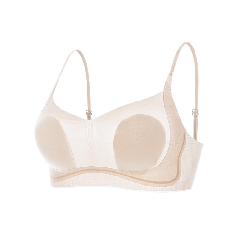 スポーツブラ ノンワイヤーブラ ナイトブラ レディースブラ 補正ブラ ブラジャー オリジナルのアイスシルクシームレス下着女性用夏用薄手細いショルダーストラップバストを小さく見せる背中が開い