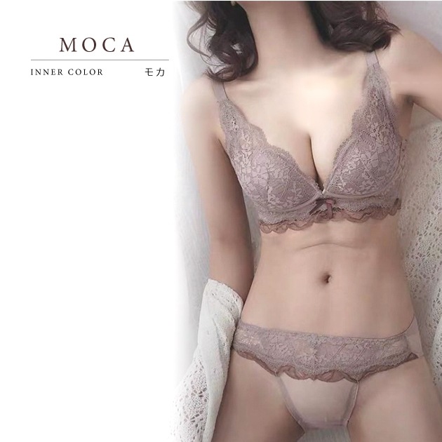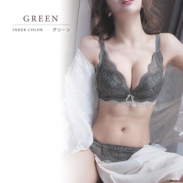谷間メイク ブラ&ショーツ 2点セット ブラック モカ ワインレッド グリーン ノンワイヤーブラ レース ブラジャー 可愛い レディース 谷間 美胸 バストアップ 盛れる ブラショーツ ランジェリー