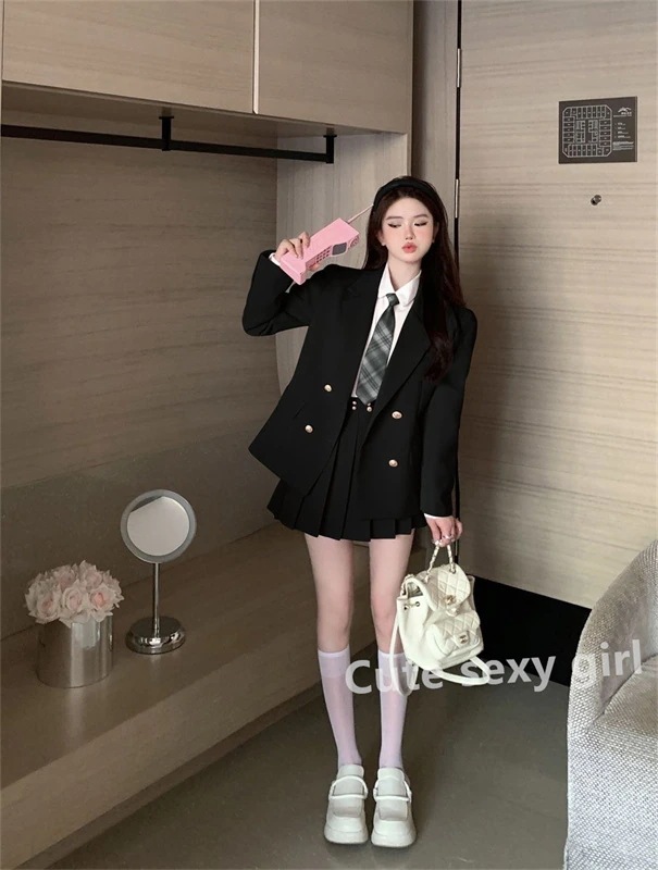 2026新作登場春夏秋JK制服セット/韓国ファッションカレッジスタイル上下セット/3点セット/スーツ プリーツスカート 制服