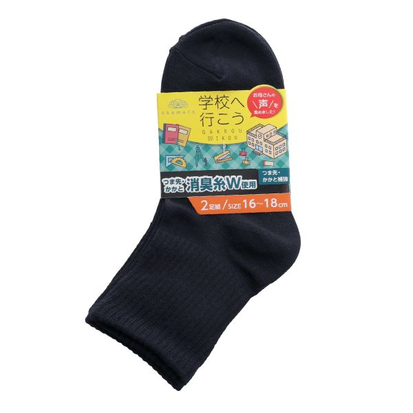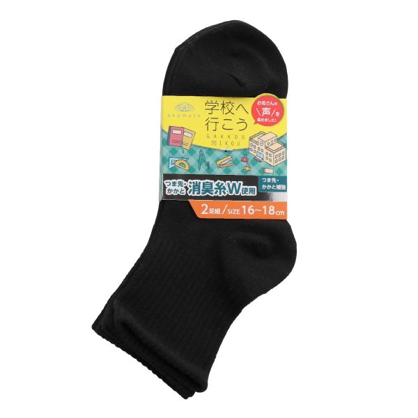 オカモト学校へ行こう お母さんの声を集めて作った丈夫な W消臭靴下 ショート丈ソックス 2足組 16-18c
