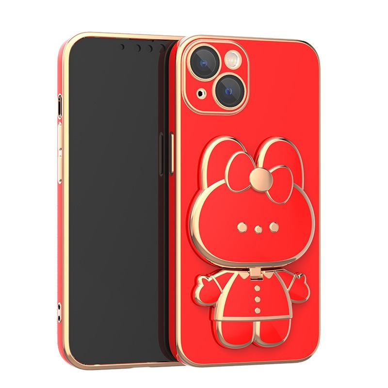 かわいいウサギのメイクアップミラーブラケット Iphone 14 携帯電話ケースに適しています 電気メッキレンズフィルム iPhone 13 オールインクルーシブソフトシェルカバー