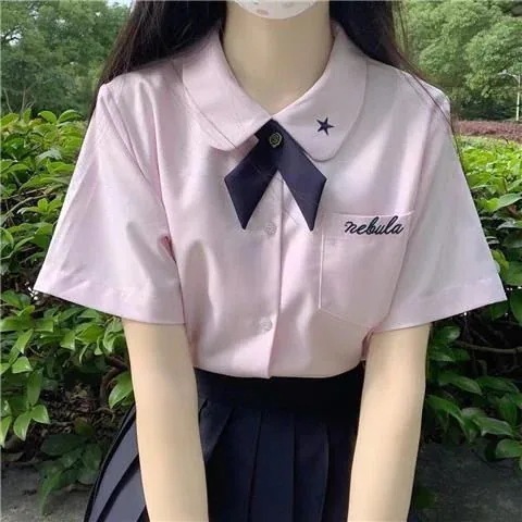 今っぽシアーシャツ タイJK制服シャツ女学院風半袖トップス