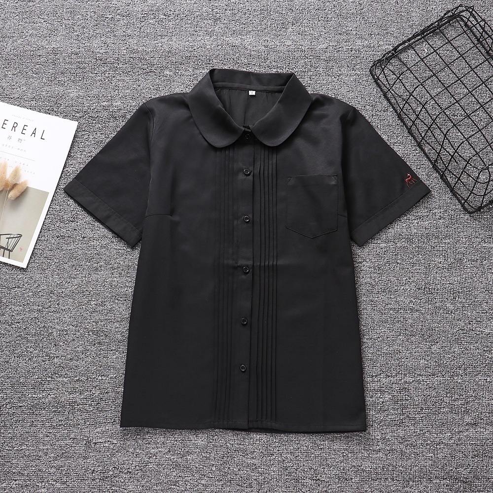 11JK制服 丸首/スクエアネック フロントアコーディオンプリーツ フォレスト鹿の子刺繍 半袖シャツ 学生シャツ 学生服 r n1001- ホワイト r n1002- ブラック r n1003- カ