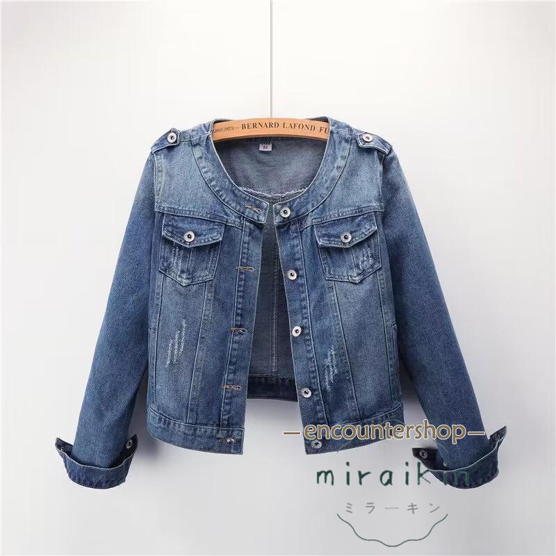 人気沸騰 デニムジャケット 秋 Gジャン レディース デニム ジージャン ショート丈 ノーカラー 長袖 綿混 アウター コート 春 カジュアル きれいめ 20代 30代 40代