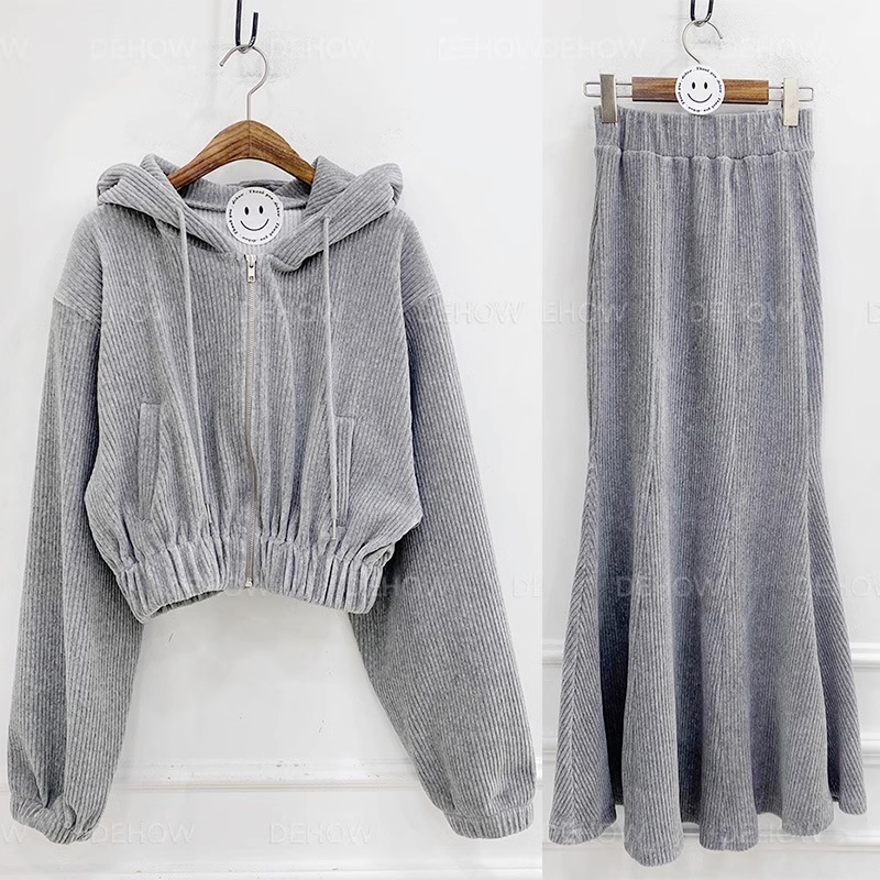 【セットアップ】パーカー+マーメイドスカート フード付きショートセーター ロングスカート set up 上下セット レディース 2点セット ニットアップ 3カラー a5021