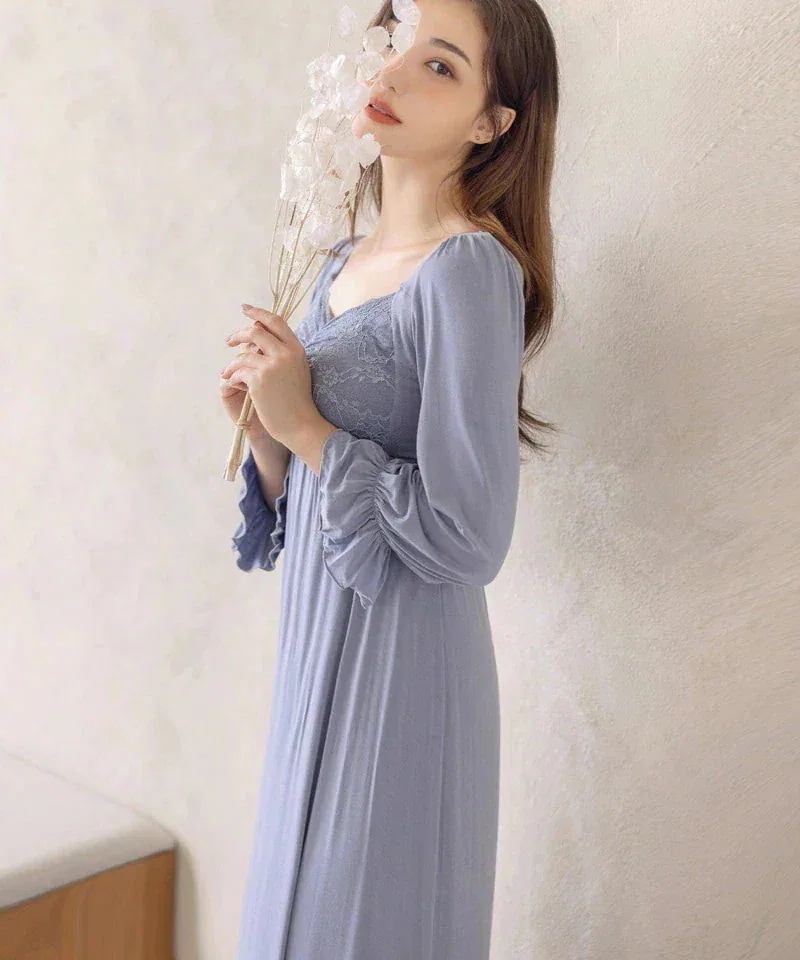 長袖の花柄白を愛用しており、洗い替え用に購入しました。花柄白はスカート部分に裏地がありましたが、ブルーはスカート部分に裏地はありませんでした。