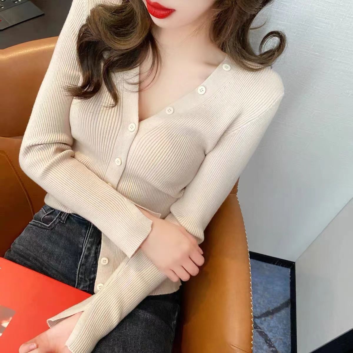 2022新作12色 カーディガン レディース 秋服 春 秋冬 ミディアム丈 vネックカーディガン8種類