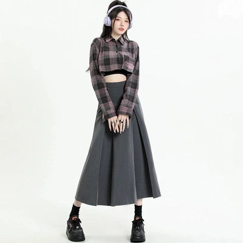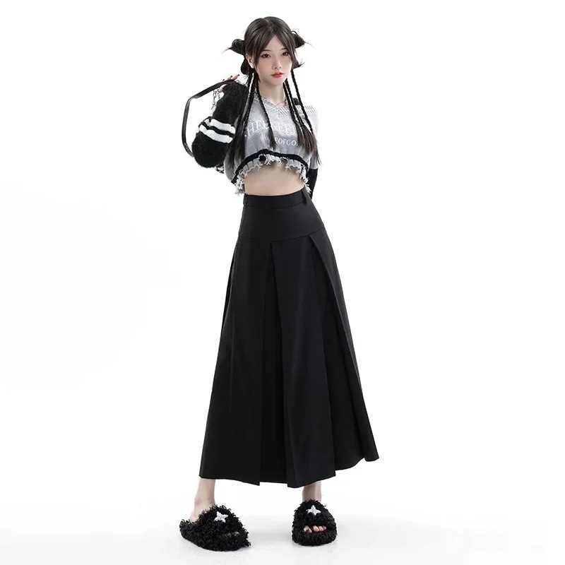 人气新作 ハイウエスト プリーツ ミドル丈 スカート レディース スリム 韓国 カレッジスタイル スーツ Aライン スカート オールマッチ ルーズプリーツスカート
