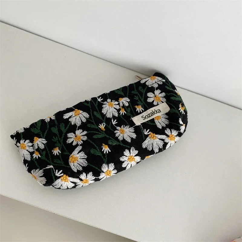 軽量キャンバス化妆ポーチ 洗えるコスメポーチ メイクポーチ フラワー 大容量 収納便利 女性 旅行用 日常用 レディース 小物収納