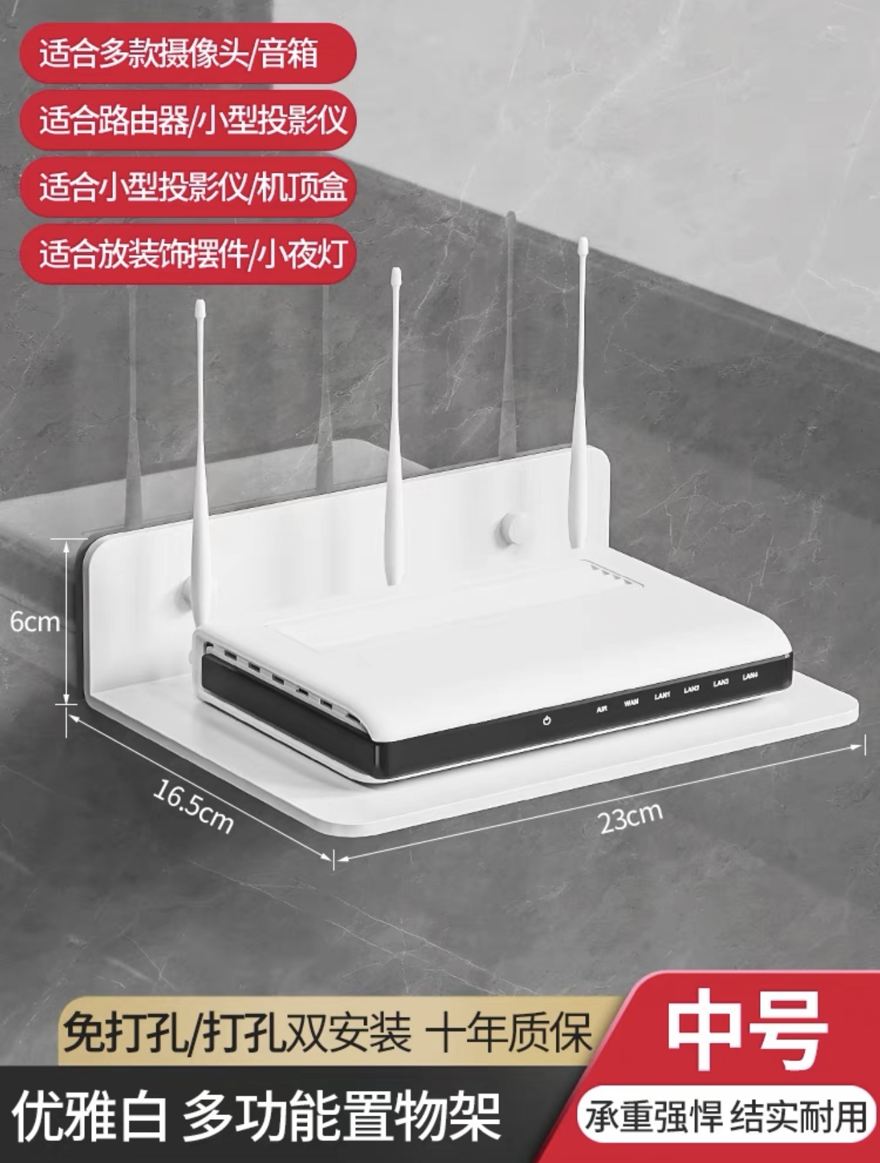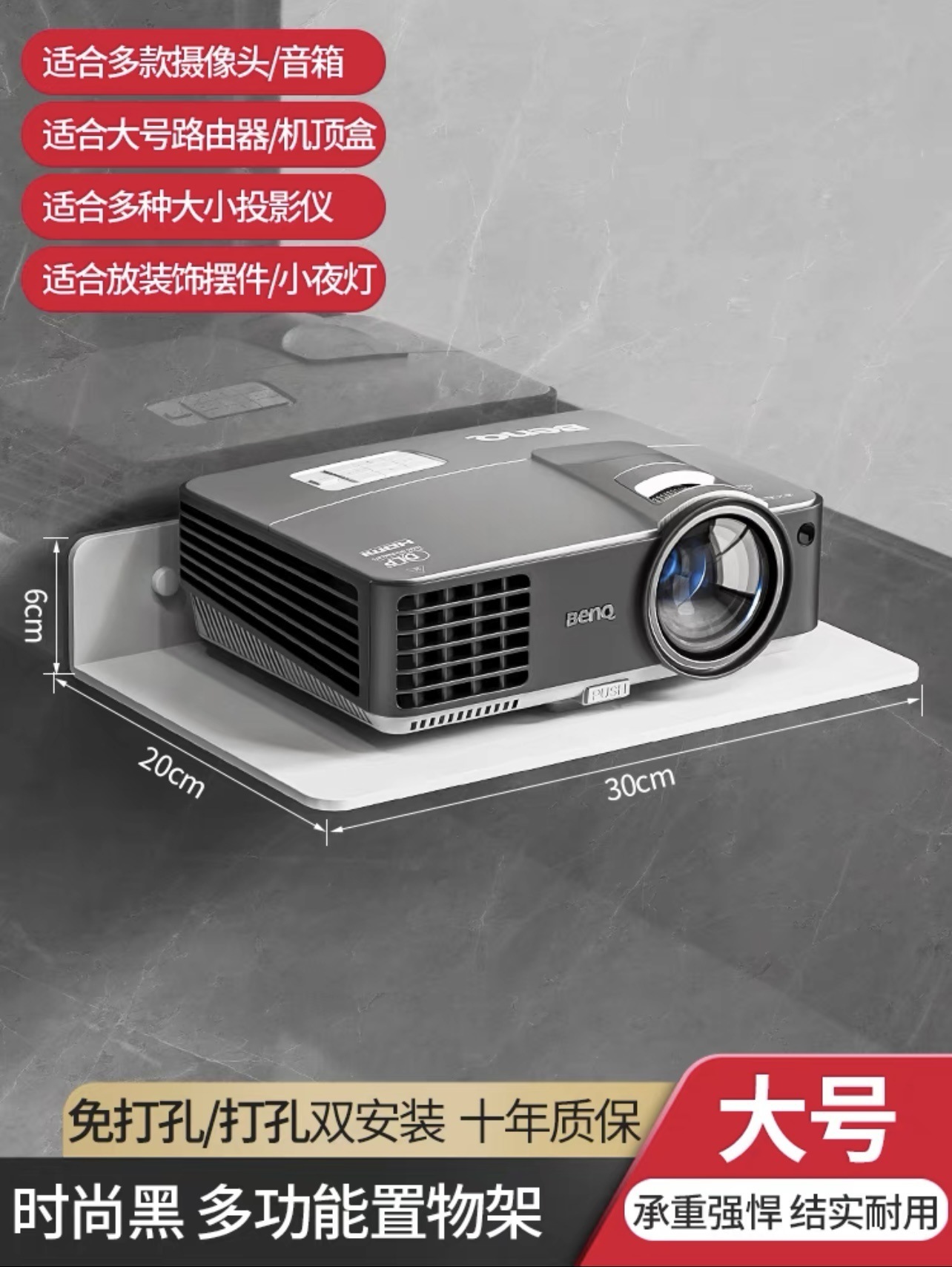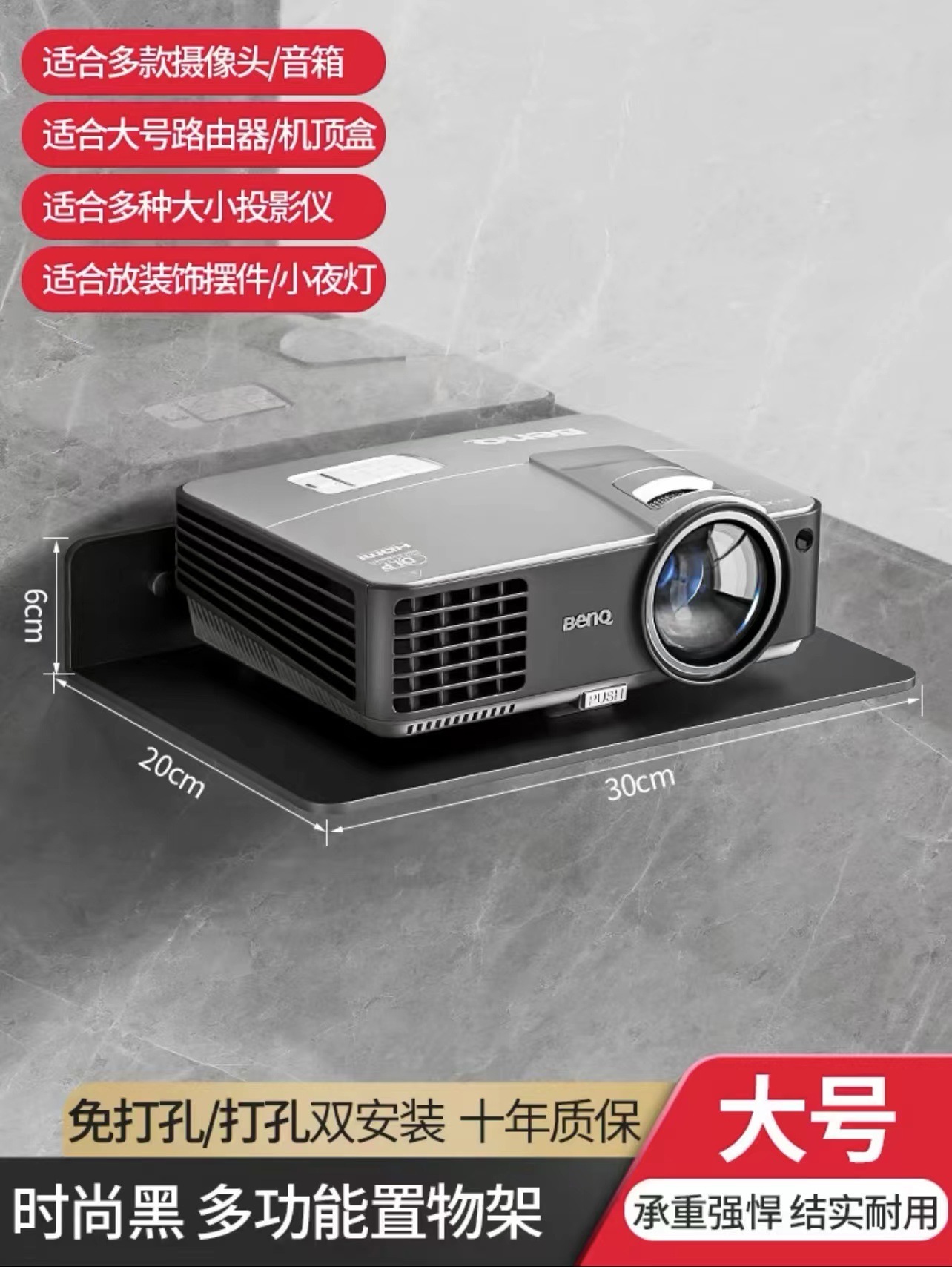 パンチフリーウォールシェルフルータープロジェクターテレビセットトップボックス小型収納ボックスサポート壁掛け