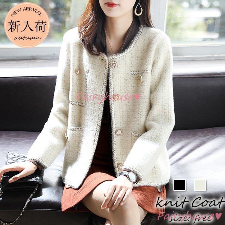 【人気商品超目玉】ニットカーディガン レディース 秋冬 40代 長袖ノーカラージャケット フェイクミンクカーディガン ショット丈アウター 秋服 ゆったり おしゃれ 韓国風 大人50代