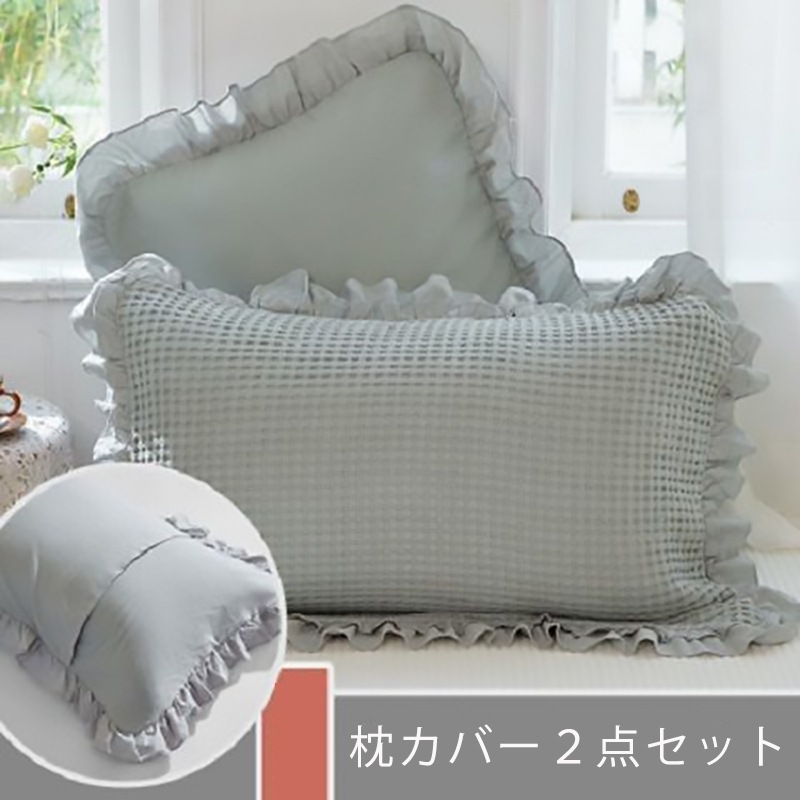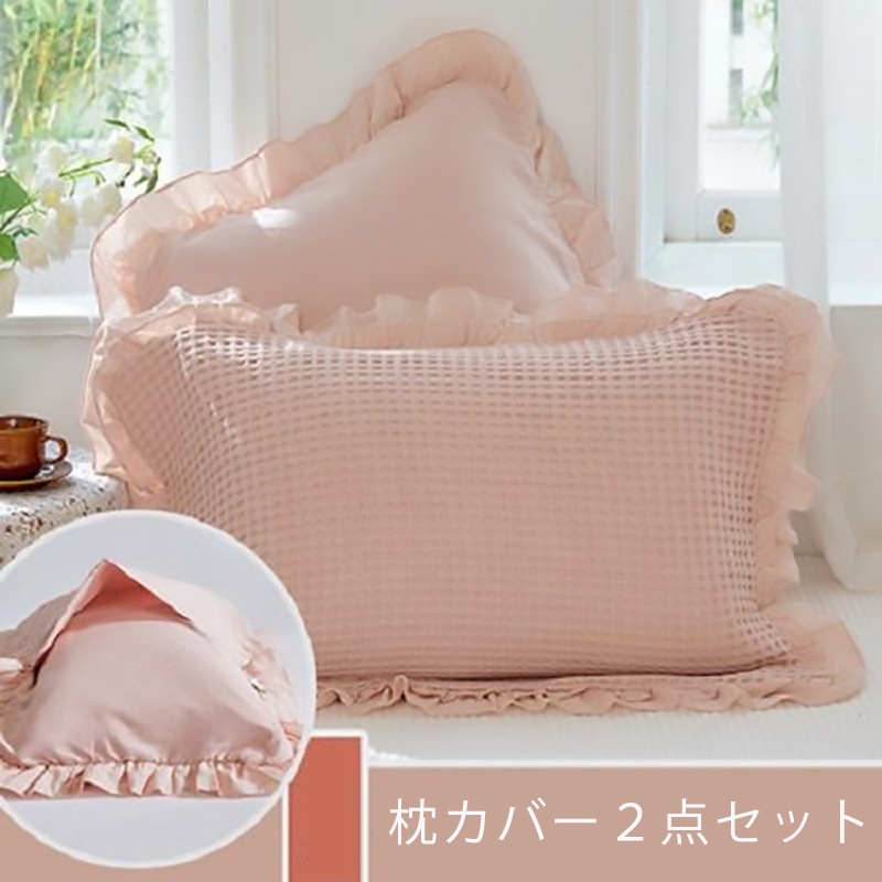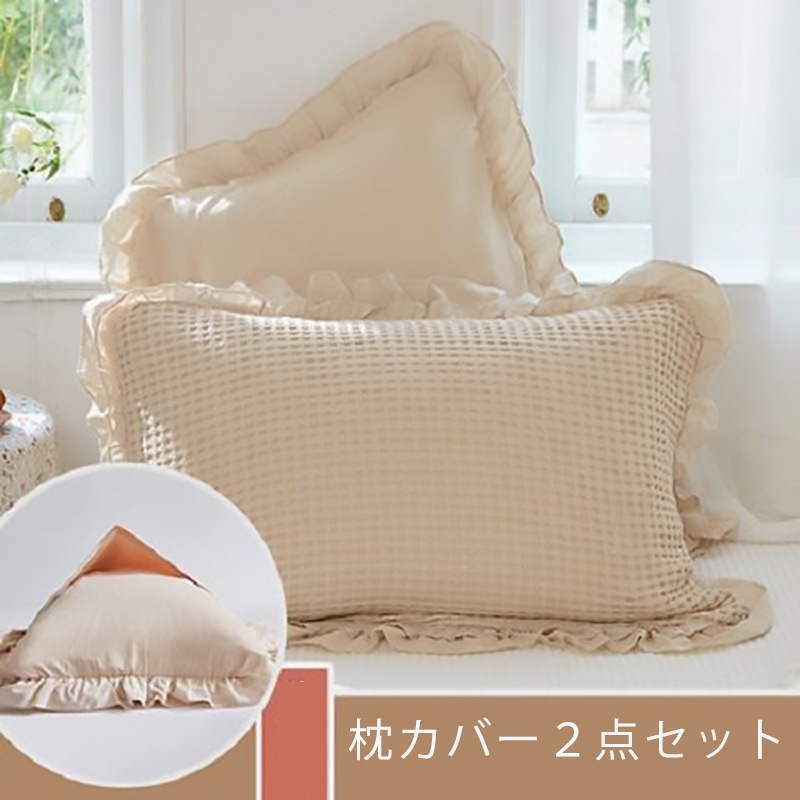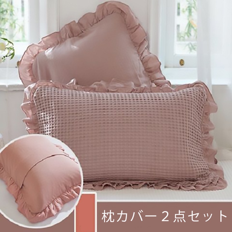 枕カバー2点セット レース付き枕カバー2点セット 選べる4色 四季兼用枕カバー 純綿生地 寝具 柔らか快適枕カバー2点セット