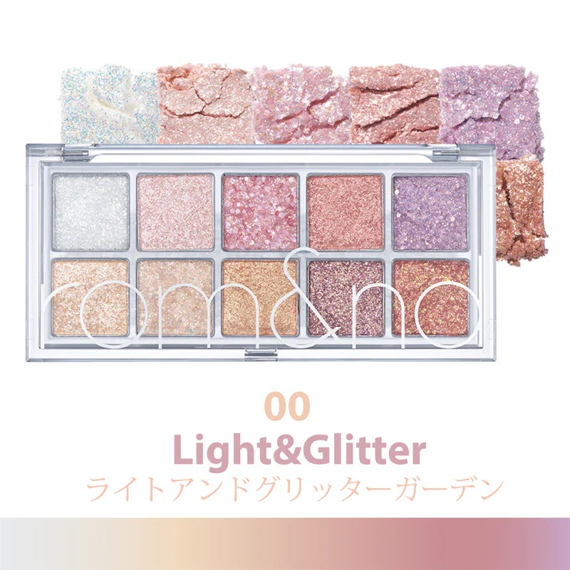 ラメはパール系と宇宙系で、ロムアンドにしては控えめです。大粒ラメではない。