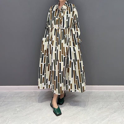プリントハーフボタンAラインロングシャツドレス 個性的なデザイン ステージ衣装 演出衣装 イベント こせい 個性 特徴あり 新作 TV 主演 ステージ衣装 舞台 おしゃれ