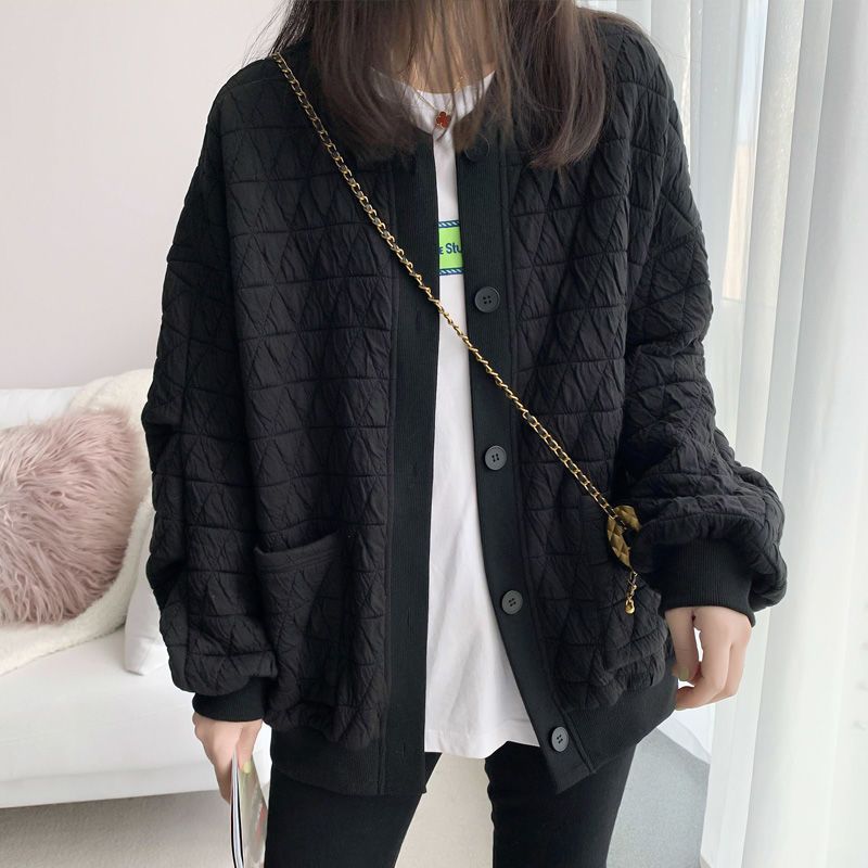 りょう格子 スウェット カーディガン ジャケット レディース ニューデザイン ゆったり 着痩せ 韓国版 コーディネート ベースボールジャージ トップス