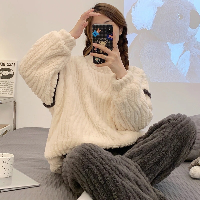 パジャマ韓国ファッション 厚手 裹起毛セットアップ 2点セット ルームウェア パジャマ レディース 上下セットセットアップ あったかルームウェア