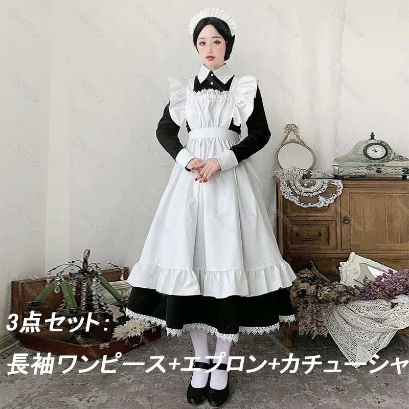 3 5mtr*** 2025.03.14 Type:3点セット:長袖ワンピース+エプロン+カチューシャ Size:M(+798円)オプション : Type:3点セット:長袖ワンピース+エプロン+カチューシャ / Size:M(+798円)