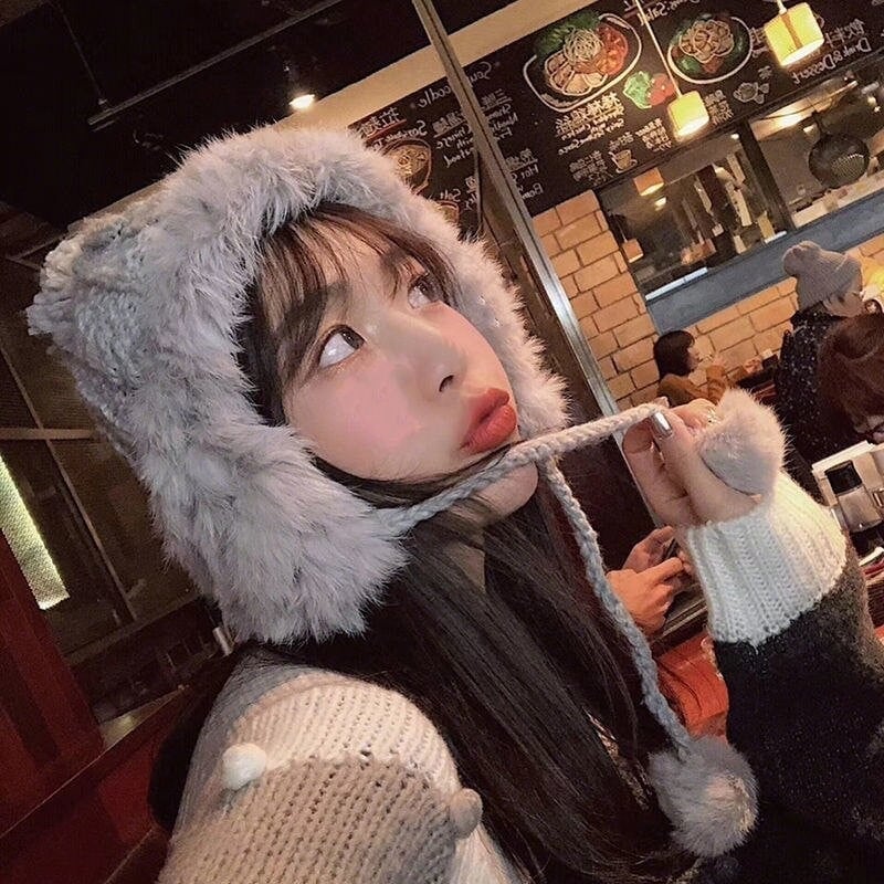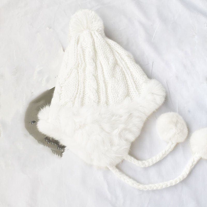 のかわいいウールキャップ 帽子女性のとのイヤーマフ暖かいの雪のウール帽子ウサギの毛皮