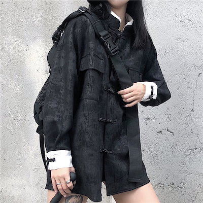 シャツ ブラック チャイナ ホック 長袖 レディース ファッション