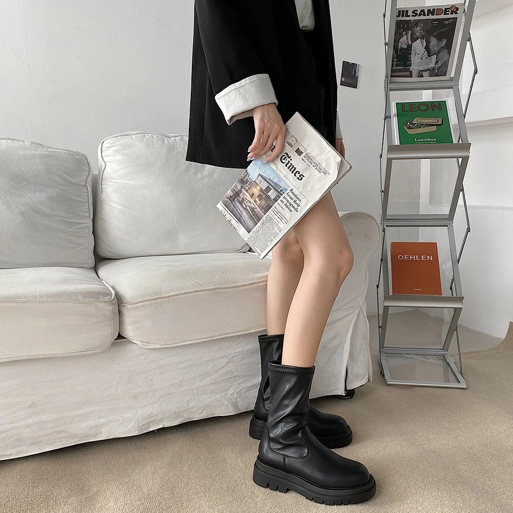 【本日限り激安】ショートブーツ厚底ブーツ女性韓国版網紅ファッションカジュアル騎士靴ハイヒールかっこいい機関車靴トレンド 美足 [5cm] [3カラー]