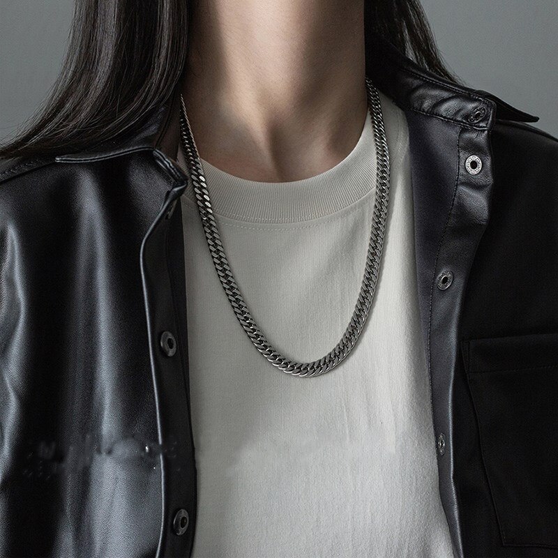 ネックレスメンズヒップホップ韓国レディースチェーンステンレス金属アレルギー対応キューバチェーン