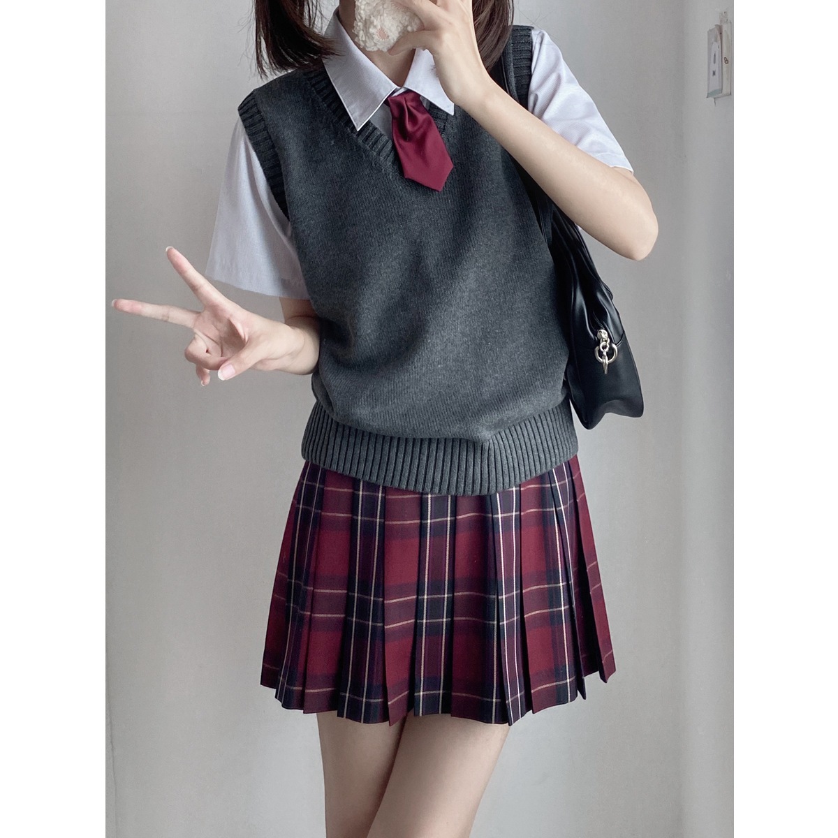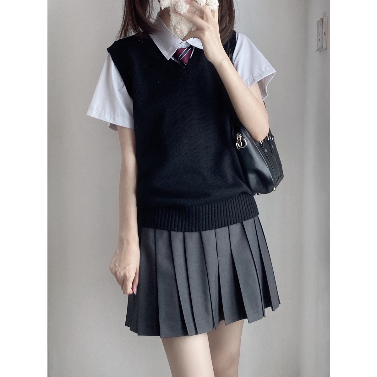 100%コットン無地 Vネック ニット ベスト ピンクホワイト スクール 制服 セーター 男女兼用 入学 通学 中学生 高校生 学生服 レディース メンズユニセックス 04