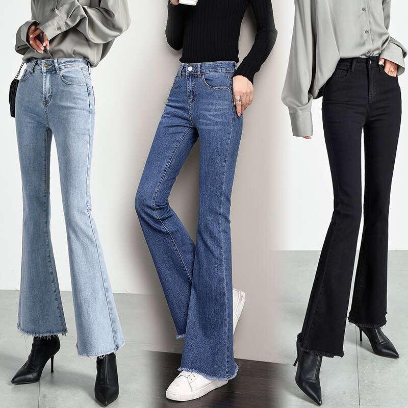 秋 パンツ ブーツカット ハイウエスト ストレッチ ジーンズ テーパードパンツ スキニー