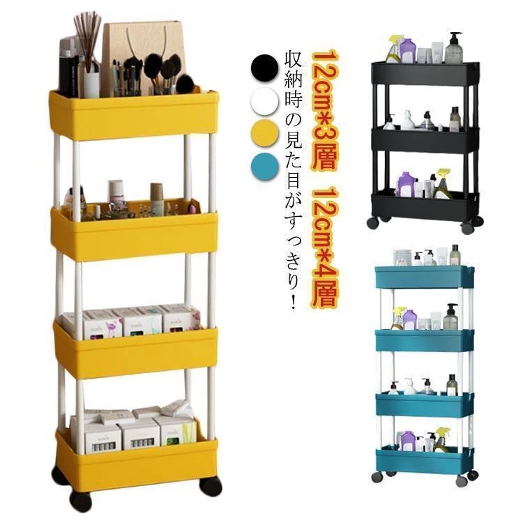 2025年新品の発売キッチンワゴン キャスター付き スリム 3段 4段 すきま収納 幅12cm ワゴン スリムワゴン スリムトローリー すき間 収納 すきま 隙間 隙間収
