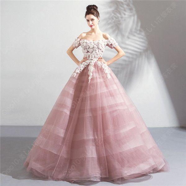プリンセスライン プリンセス かわいい シンプル ドレス レディース カラードレス ウェディングドレス ロング 演奏会 ピアノ 発表会 袖あり 半袖 大人 ステージ-21