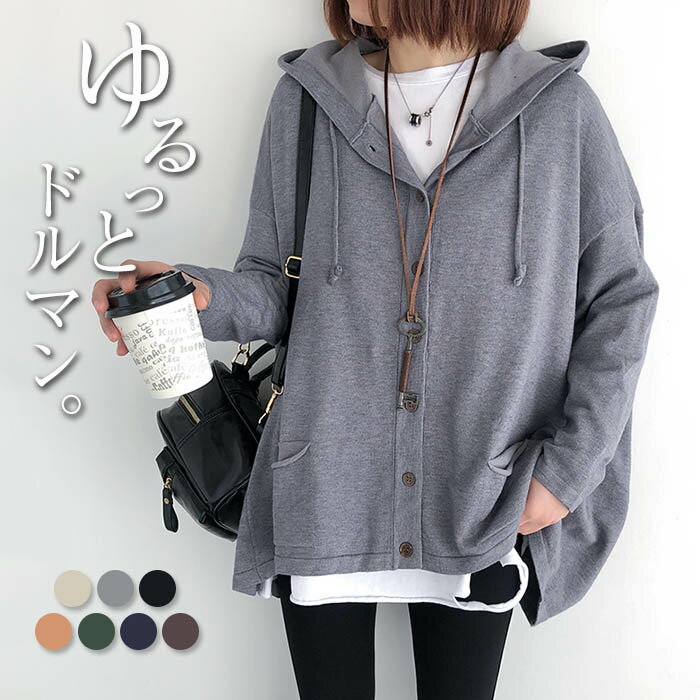 フード付き長袖ニットパーカカーディガンアウター無地トップスレディース秋ニットセーターニットパーカーゆったり長袖ニットカーディガンビッグサイズオーバーサイズ